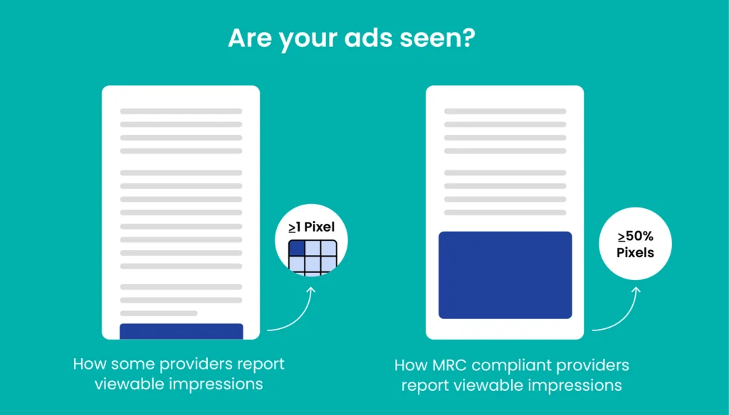 With vCPM (viewable CPM), publishers only receive money for impressions that are deemed viewable, meaning they are actually seen by users. An impression is considered viewable if a certain portion of the ad (typically at least 50% of its pixels) is visible on the user’s screen for a specified duration (usually one second for display ads and two seconds for video ads). The formula for vCPM is:
